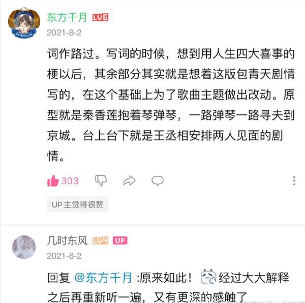 作词者东方千月曾解释说《探窗》的歌词也跟93包青天的《铡美案》有关。
