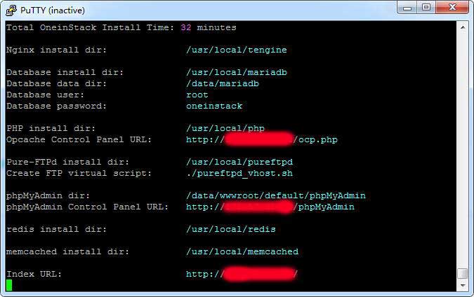 创建测试站点之前,先要修改数据库的root默认密码,其默认密码为oneinstack。登录SSH使用自带修改脚本。