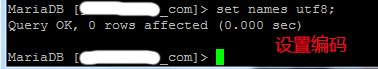- MariaDB [(none)]> set names utf8; //设置数据库导入编码