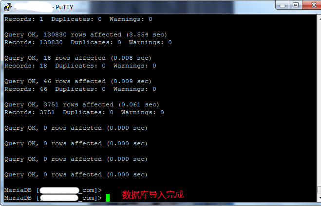 - MariaDB [(none)]> source /data/wwwroot/huaiyinjie.sql; //导入数据(注意sql文件的路径)